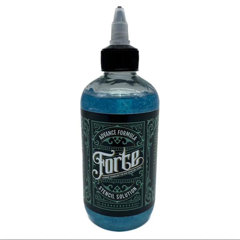 Forte was born out of the collaboration between the Forte Technology laboratories and the best artists in the global tattoo scene. Forte is the first professional medium for the stencil application with an antibacterial function. Forte, thanx to its poligonal network molecular structure, allows to transfer the stencil in a defined and lasting way, thus guaranteeing extreme precision in the stencil positioning and avoiding any kind of dribbling, also after many passes. The greatest news is however its focus on hygiene. Thanx to its antibacterial action, Forte disinfects and immediately removes any pathogen from the skin, already from the moment of the stencil application. Tattooing becomes even safer with Forte.